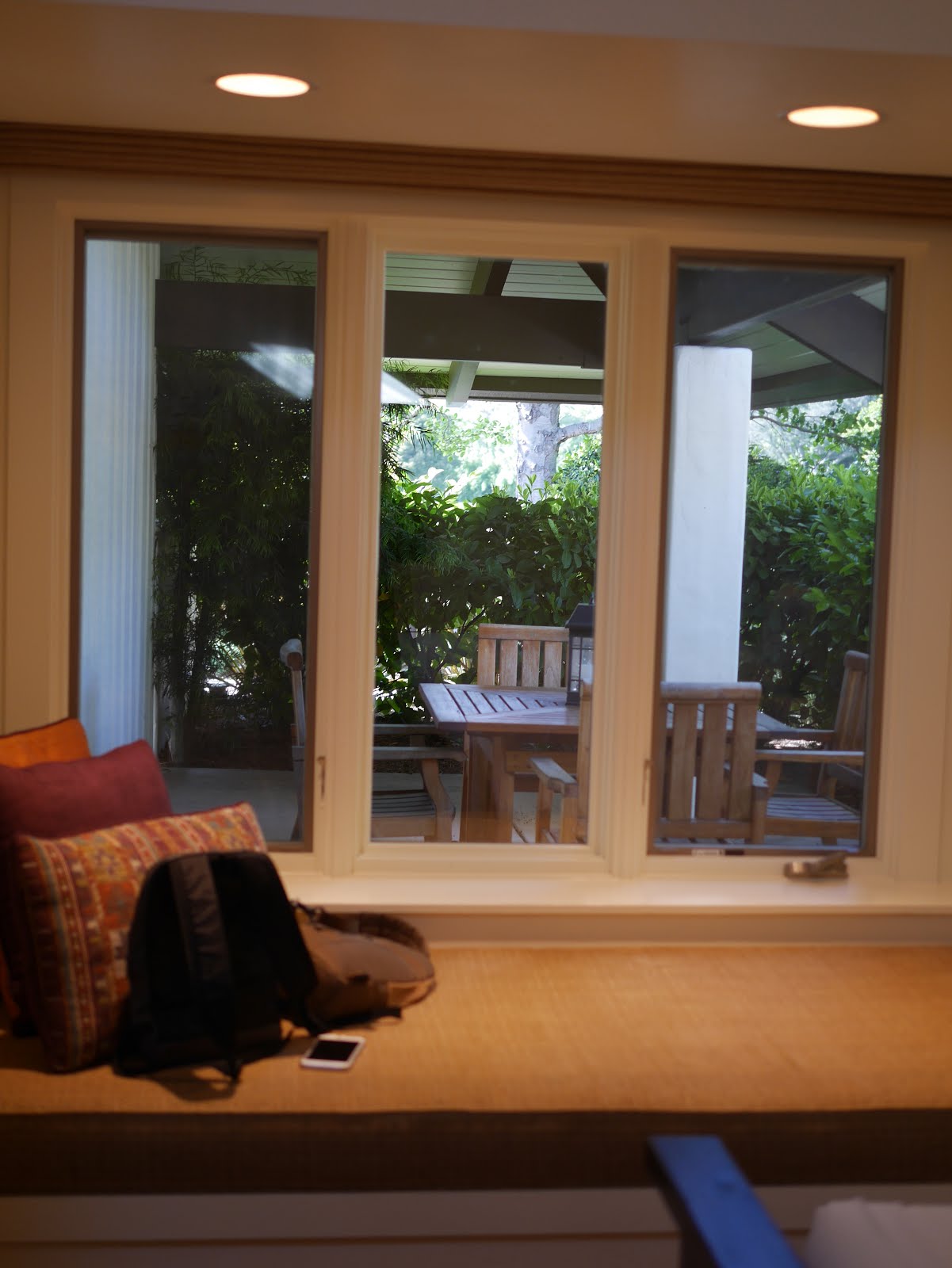 今天住的Quail Lodge & Golf Club高爾夫球俱樂部是我在Booking.com時間接近時利用特價時段定的,一晚4人房8116台幣(以當時匯率計算),我們懷抱著期待的心情拖著行李穿過藤蔓做的走道棚架,到了獨棟的小白屋前慢慢的打開房門。...."哇~!"真的很棒呢!